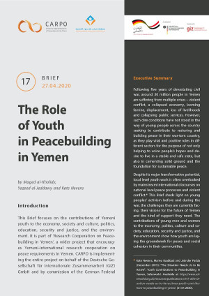 Diese Initiative soll die Kapazitäten jemenitischer und internationaler Forscher:innen und Organisationen bei der Erforschung und Beratung zu den Themen Friedensförderung und Entwicklung im Jemen entwickeln und stärken. Im Rahmen dessen sollen eine Reihe von Studien, jeweils resultierend aus einer jemenitisch-internationalen Forschungspartnerschaft, zu verschiedenen Aspekten der Friedensförderung im Jemen erarbeitet und publiziert werden. Dieses Projekt wird im Auftrag der Deutschen Gesellschaft für Internationale Zusammenarbeit (GIZ) GmbH durchgeführt und vom Bundesministerium für Wirtschaftliche Zusammenarbeit und Entwicklung (BMZ) und der Europäischen Union gefördert.