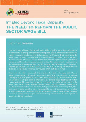 Dieser Policy Brief widmet sich Jemens aufgeblähtem öffentlichen Sektor. Angesichts andauernd großer Haushaltsdefizite sind die Lohnkosten im öffentlichen Dienst finanzpolitisch nicht tragbar und drohen, den ökonomischen Wiederaufbau und die …