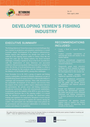 Dieser Policy Brief fasst die Diskussionen eines ‚Rethinking Yemen’s Economy‘-Workshops zur jemenitischen Fischereiindustrie, der am 26.-28. November 2019 in al-Mukalla (Jemen) stattfand, zusammen. Die Workshopteilnehmer:innen, unter ihnen …