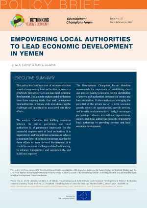Dieser RYE Policy Brief, der auf Diskussionen des Development Champions Forums im Dezember 2023 in Kairo basiert, enthält eine Reihe von Empfehlungen, die darauf abzielen, die lokalen Behörden im Jemen in die Lage zu versetzen, effektiv …